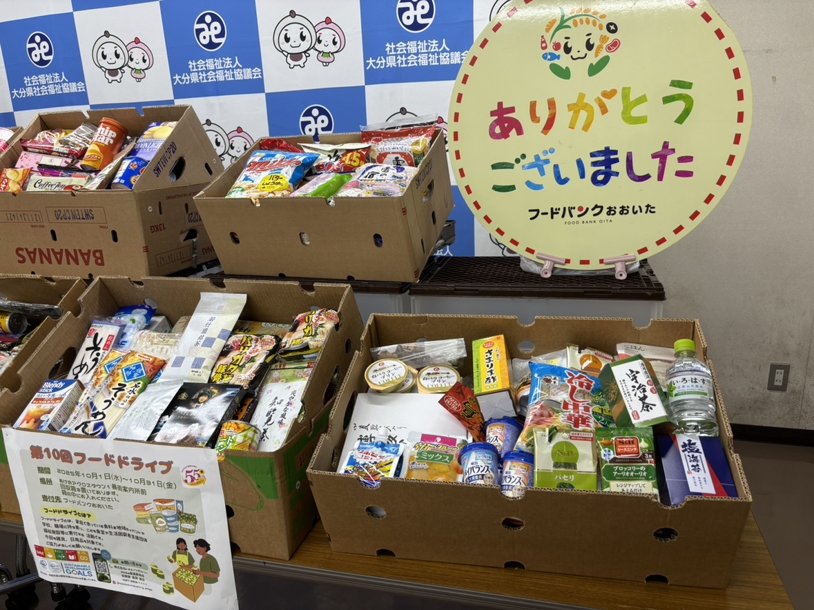 令和 7年11月6日 株式会社トキハインダストリー様から食品・雑貨をご寄贈いただきました。