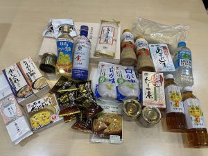 令和 7 年 10月31日に マルミヤストア鶴崎森店様、坂ノ市店様から食品等をご寄贈いただきました。