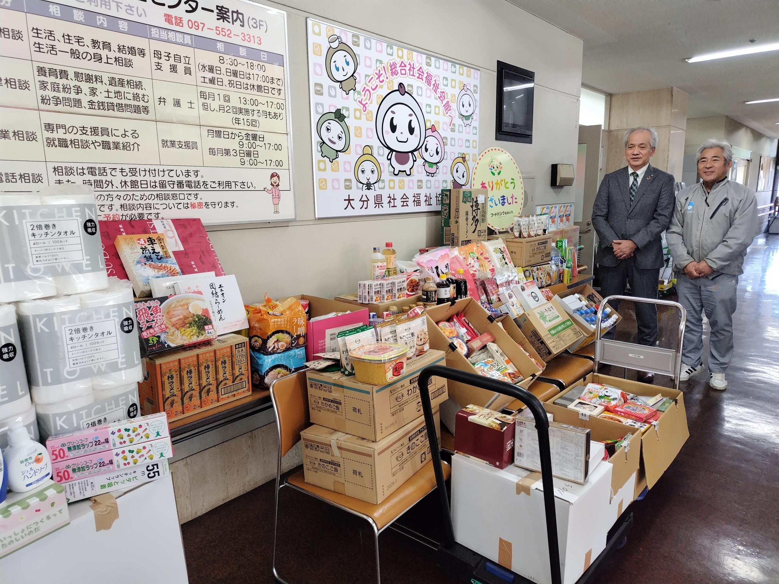 令和 7年 12月23日、令和8年1月13日に 大分県労働者福祉協議会様に食品と生活用品をご寄贈いただきました。